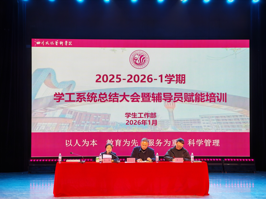 为深入贯彻立德树人根本任务,全面总结本学期学生工作成效,夯实辅导员队伍专业化建设根基,2026年1月5日上午9:30,我校学生工作部在绵阳校区多功能厅举行了2025-2026-1学期学工系统总结大会暨辅导员赋能培训。副校长张大汉出席会议并讲话,学生工作部班子成员、各二级学院党总支及直属党支部书记、副书记,学生工作部全体...
