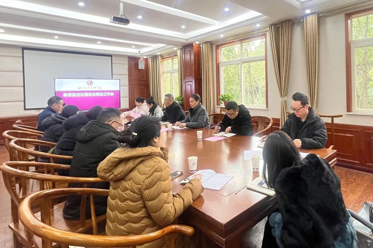 2026年1月21日上午,我校在绵阳校区行政楼四楼会议室召开寒假前后校园安全稳定工作部署会。学校党委副书记、纪委书记刘立新,党委副书记廖江出席会议,两校区管委会及相关职能部门负责人参加会议。会议由副校长张大汉主持。会议首先传达学习了省、市关于做好寒假前后安全稳定工作及今冬明春极端天气防范应对等相关文件精神。随后,与会人...